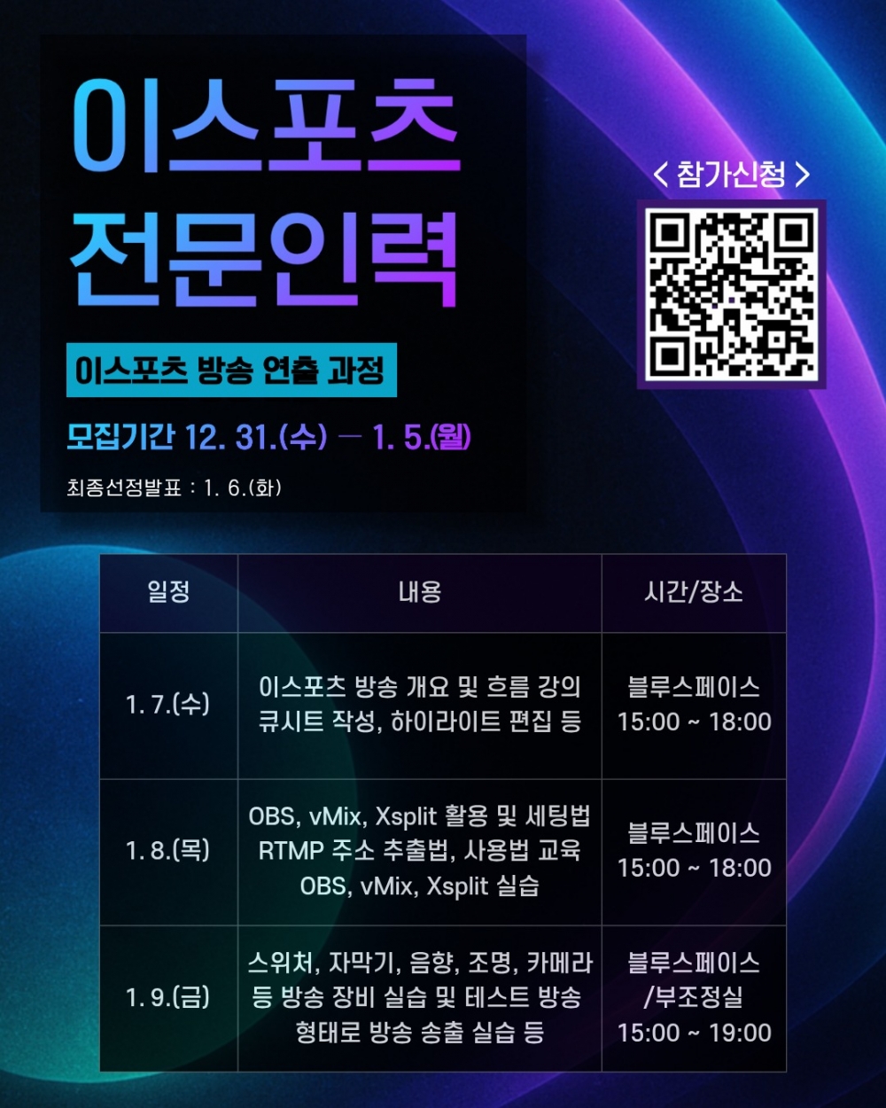이스포츠 방송 연출 분야에 관심 있는 분들의 많은 참여 바랍니다