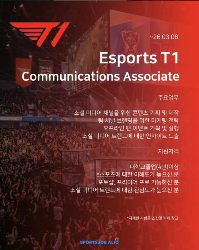 [Esports T1 Academy] PR & Marketing Associate (접수기간: 2026. .3. 24. 화요일 24시 까지)