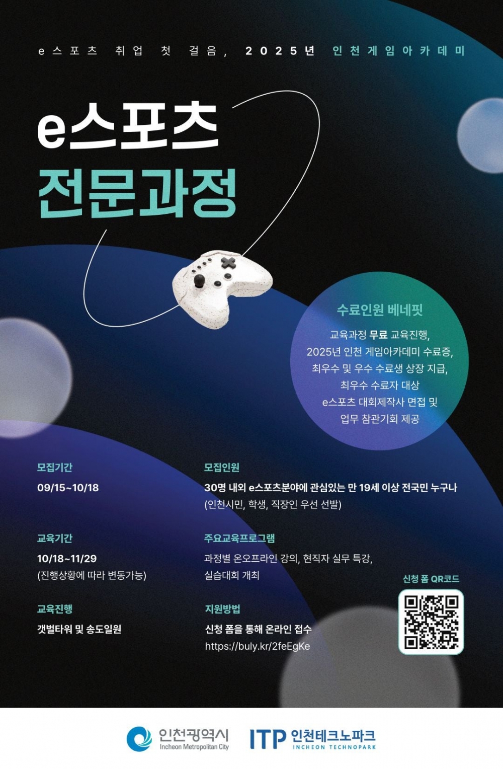 2025 년도 인천 게임 아카데미 - e스포츠 전문과정 교육생을 모집합니다
