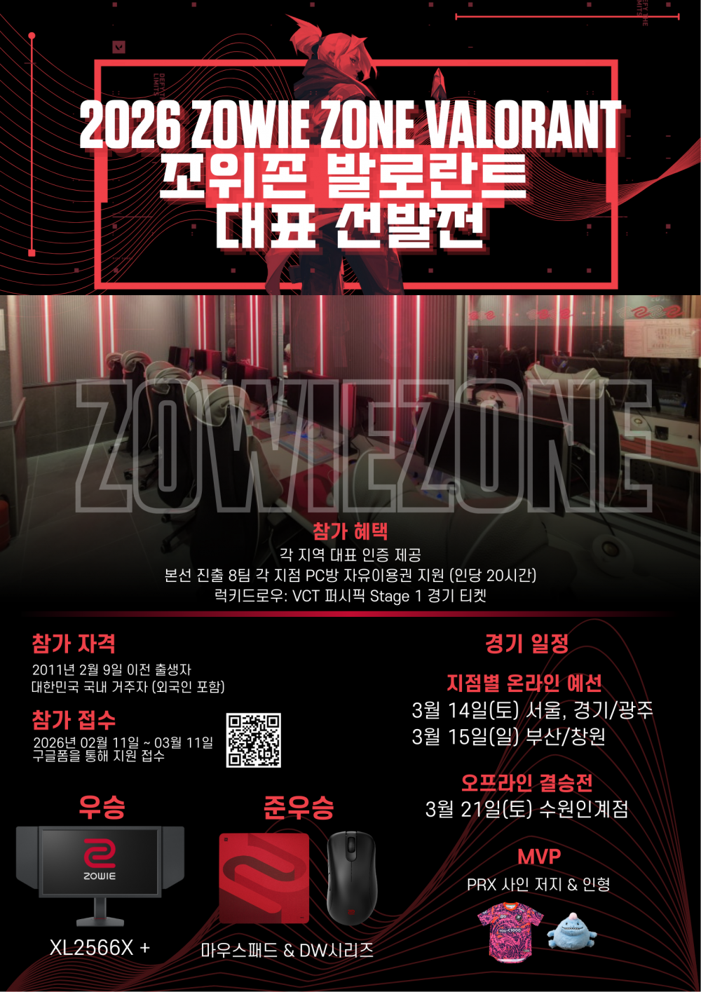 발로란트 유저라면 누구나 도전할 수 있는 2026 ZOWIE ZONE 권역별 대표 선발전이 열립니다.